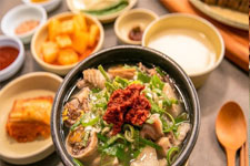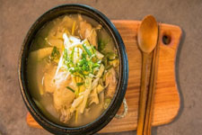 닭을 푹 삶아우린 곰탕. 닭고기의 담백함이 일품인 보양식입니다. 콜라겐과 단백질이 많아 피부미용에도 좋은 닭곰탕의 맛을 즐겨보세요.