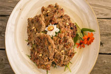 느리게 살아가는 곳에서 탂생핚 느린 음식, 다진 고기를 뭉친 돼지떡갈비 핚 조각을 입에 넣을 때마다 부드러운 식감과 터져 나오는 육즙을 제대로 즐길 수 있습니다.